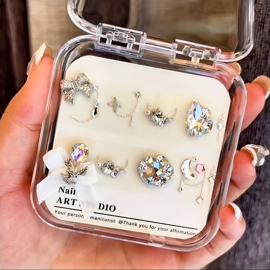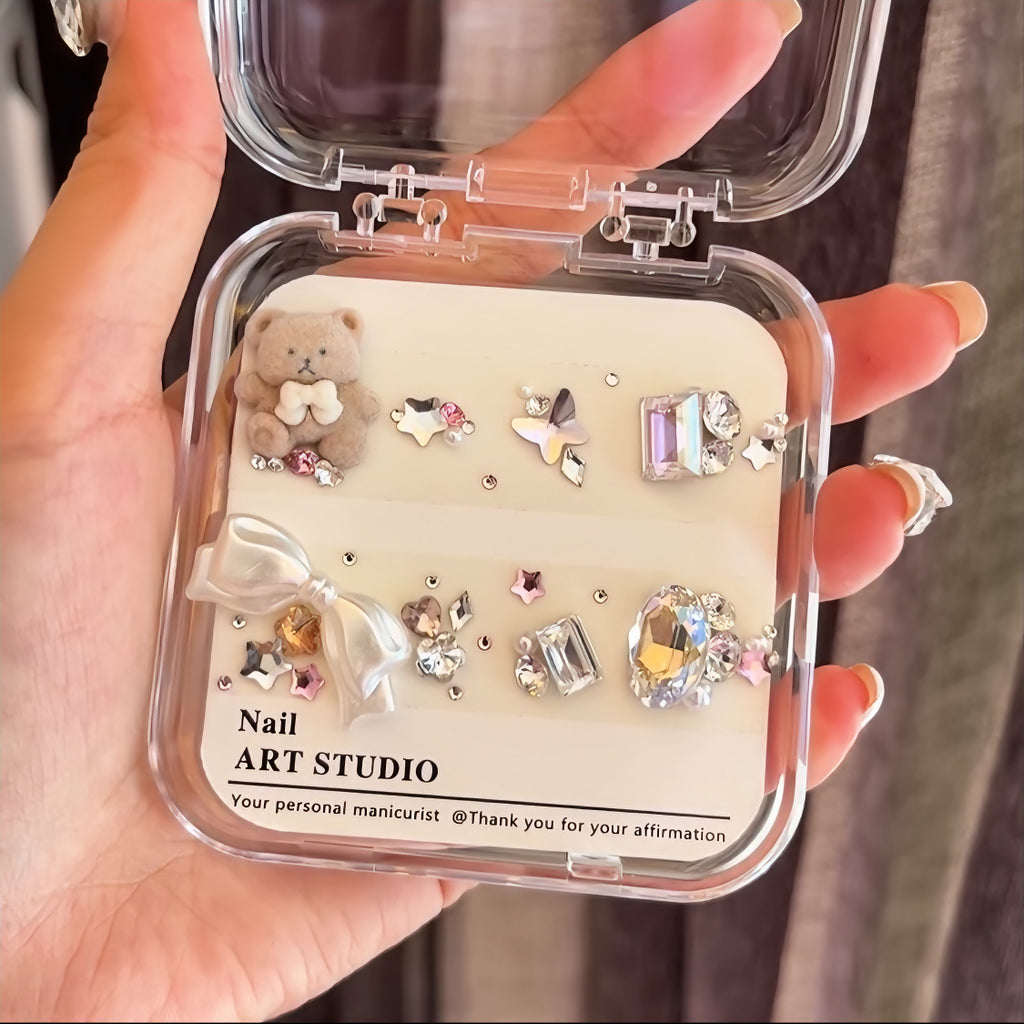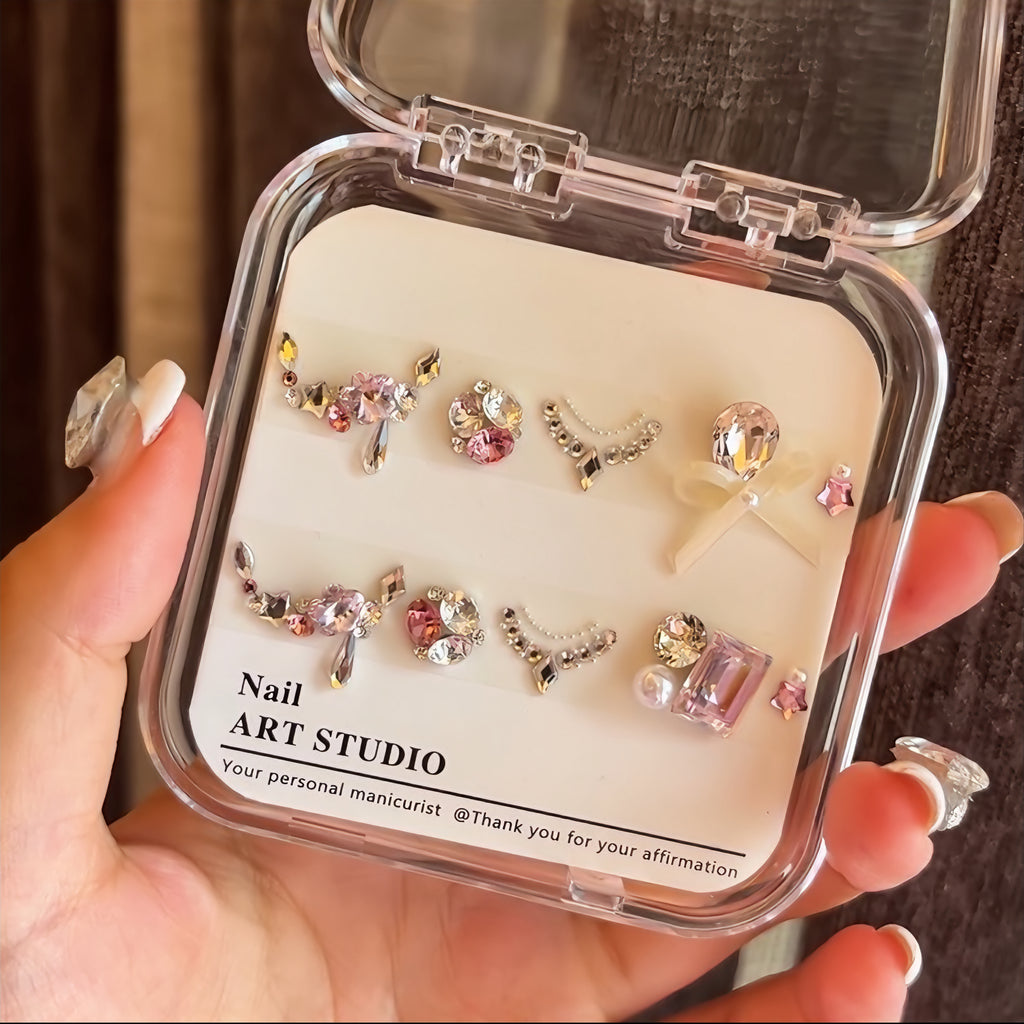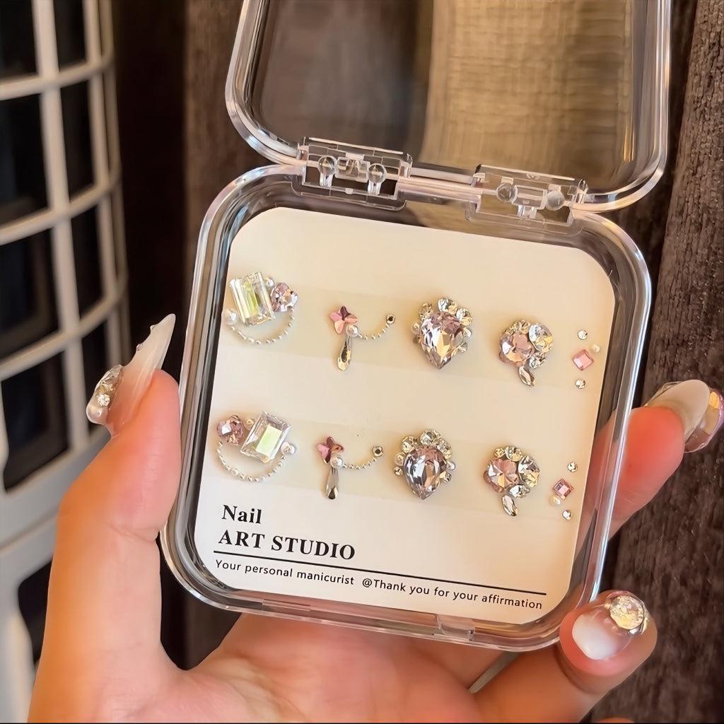 Our DIY diamond material package sets are all handmade. After purchasing, you'll need to use tweezers to pick them out one by one, and then replicate the pre-made designs onto your own nails.